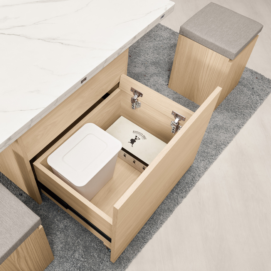 抽屜 採用三節式鋼珠滑軌